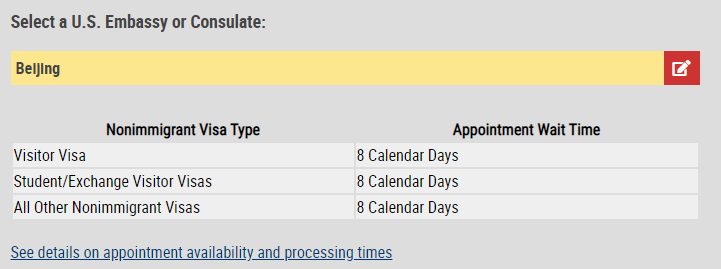 美国签证面谈预约的预估等待时间可能每周都在变动,目前给出的只是预估时间,并不保证一定能得到预约。建议大家参考大使馆或领事馆签证处网站上的信息,大使馆和领事馆的网站上也都会一一具明。由于信息可能随时会变动,也请及时关注官方网页。